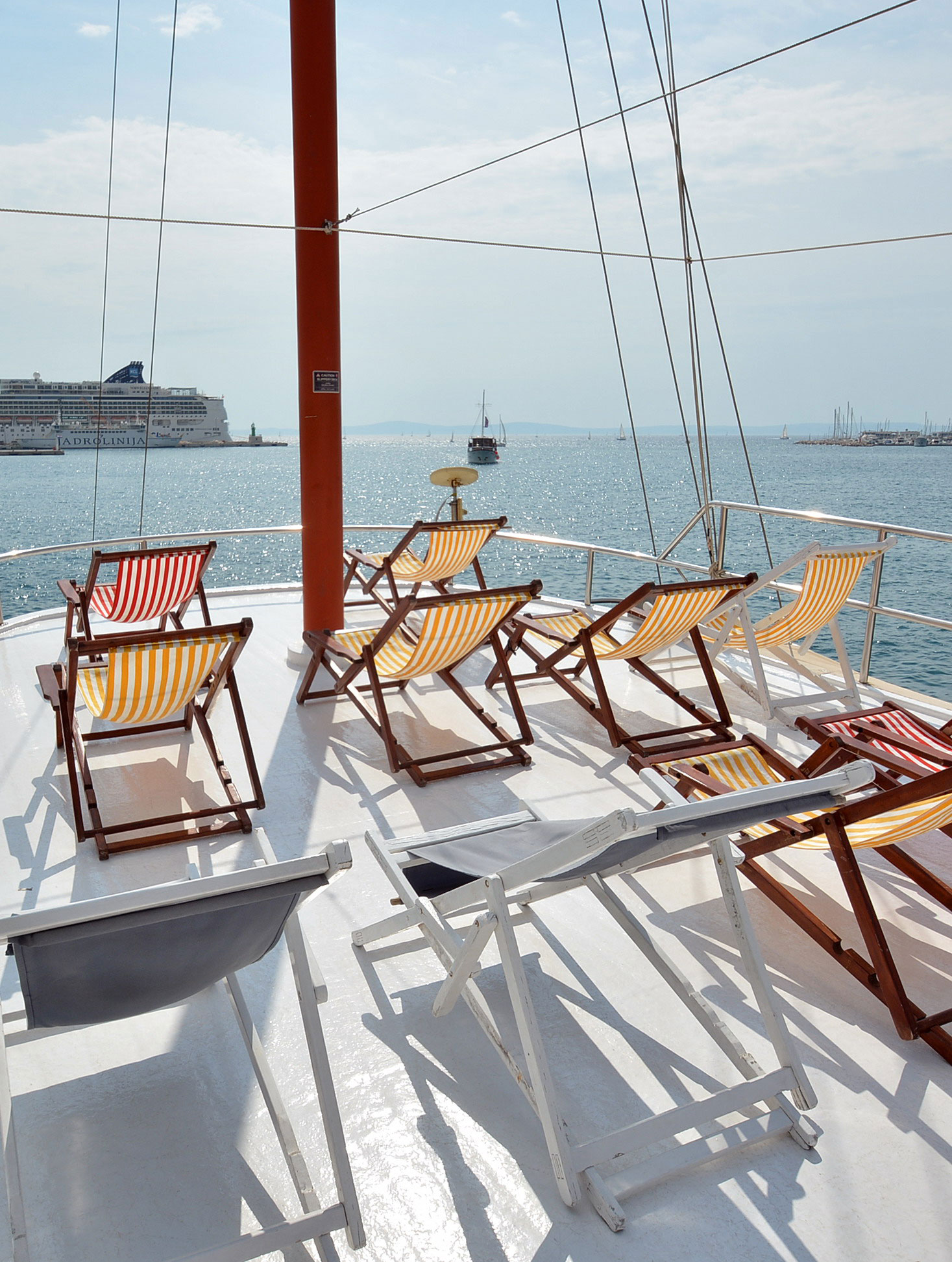 The rooms are simple yet comfortable. The bathrooms have only a showerhead. There are 3 different outdoor community spaces to enjoy while onboard.